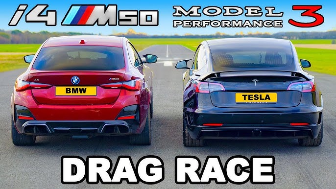 Bmw I4 M50 V Tesla Model 3 Performance Drag Race Youtube